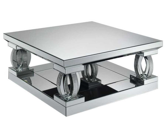 Amalia Square Coffee Table with Lower Shelf Clear Mirror